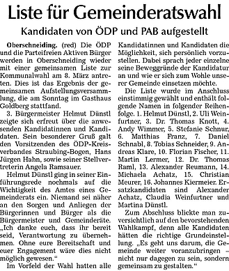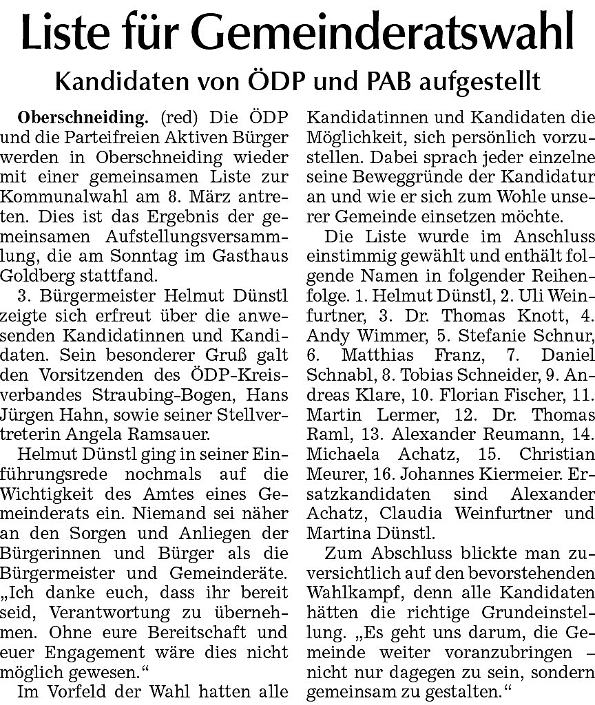 Erfolgreiche Listenaufstellung in Oberschneiding